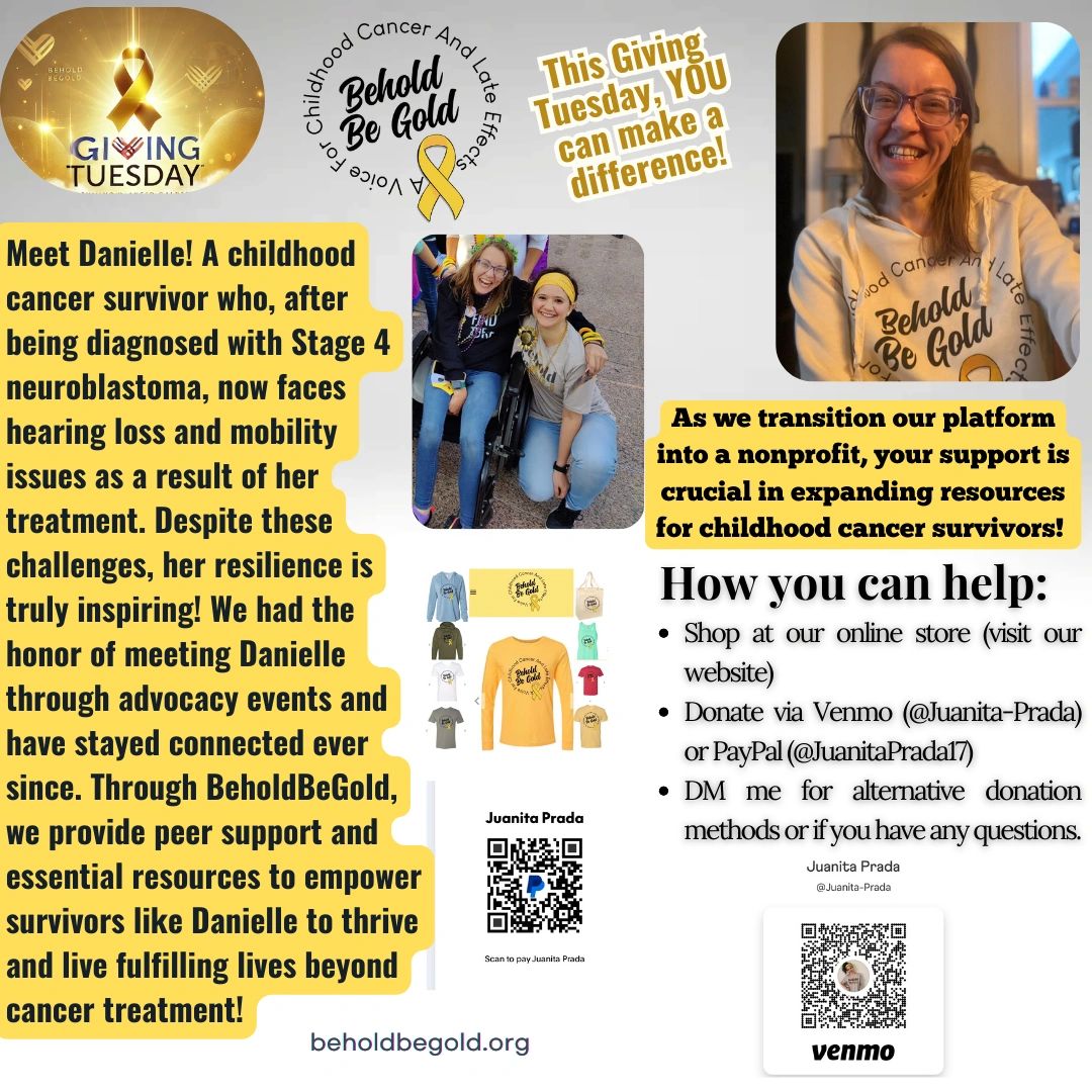 "BeholdBeGold is to perceive an unstoppable force of positivity, ambition, and resiliency that arises within you while undergoing the late effects, challenges, and barriers that come with surviving childhood cancer." -Juanita Prada Learn more!